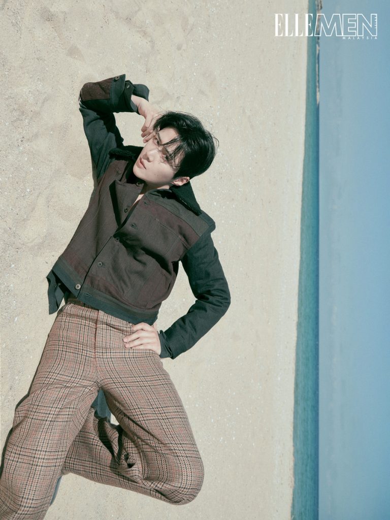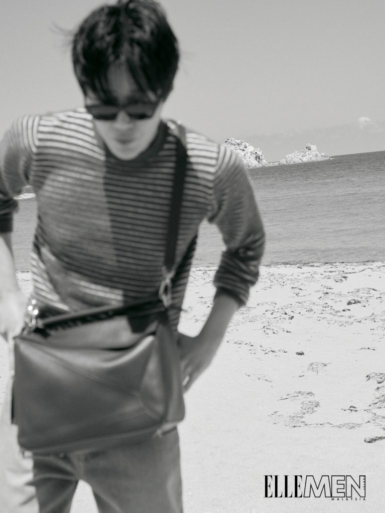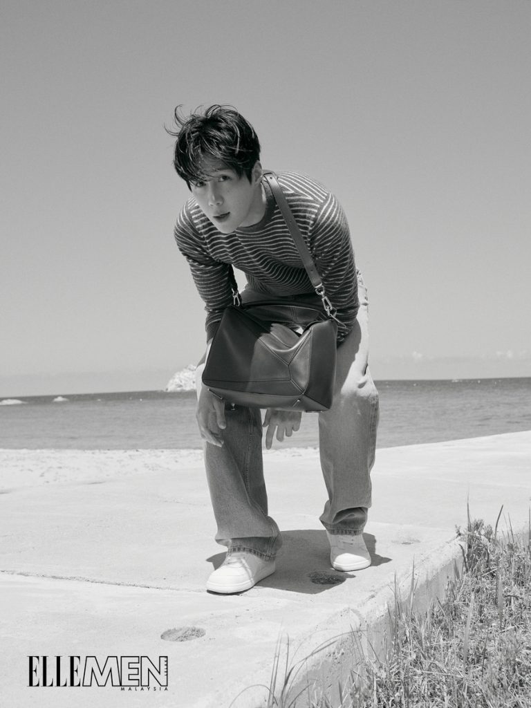 “Selain itu, team saya bekerja juga turut datang bersama. Apabila orang di sekeliling saya tersenyum gembira saya jadi lebih bersemangat bekerja. Semasa kita berjumpa untuk sesi editorial lain dahulu juga, kita banyak berkata tentang laut bukan? Tetapi hari ini suasana laut itu terasa sedikit berbeza buat saya. Empat tahun lalu, watak Hong Ban-jang boleh terus berlari masuk ke dalam air laut. Sekarang, saya hanya suka merenung dari jauh, seakan-akan menghayati sebuah lukisan. Saya juga sebenarnya tidak tahu berenang, tetapi saya sangat suka bermain dengan air. Saya suka termenung menatapnya lama.”